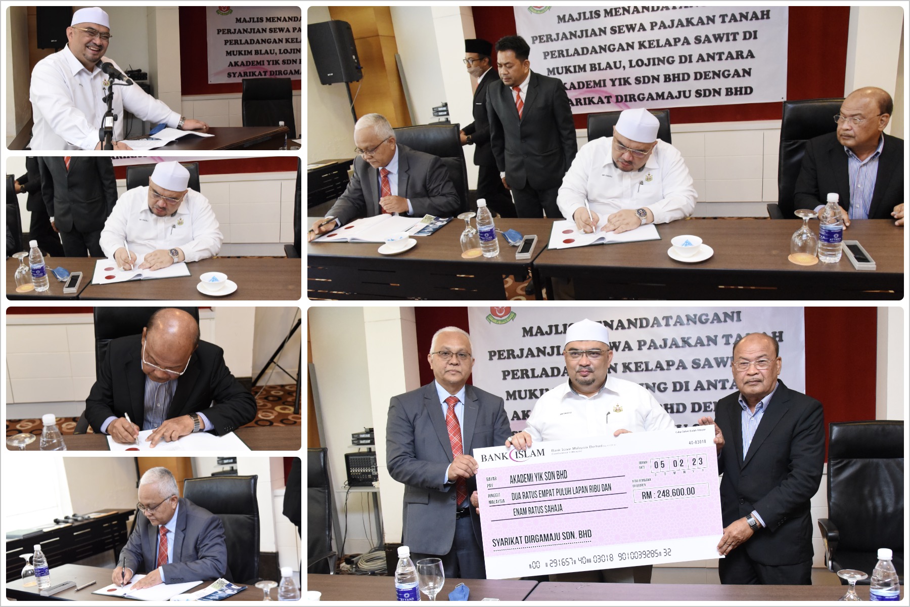 Kota Bharu: 5 Feb – Akademi YIK Sdn. Bhd. terus melangkah ke hadapan dengan memeterai perjanjian Pajakan Tanah Perladangan Kelapa Sawit di Mukim Blau, Lojing dengan Syarikat Dirgamaju Sdn. Bhd. Majlis menandatangani perjanjian berkenaan telah diadakan pada pada 5 Februari 2023 bertempat di Hotel Perdana, Kota Bharu.