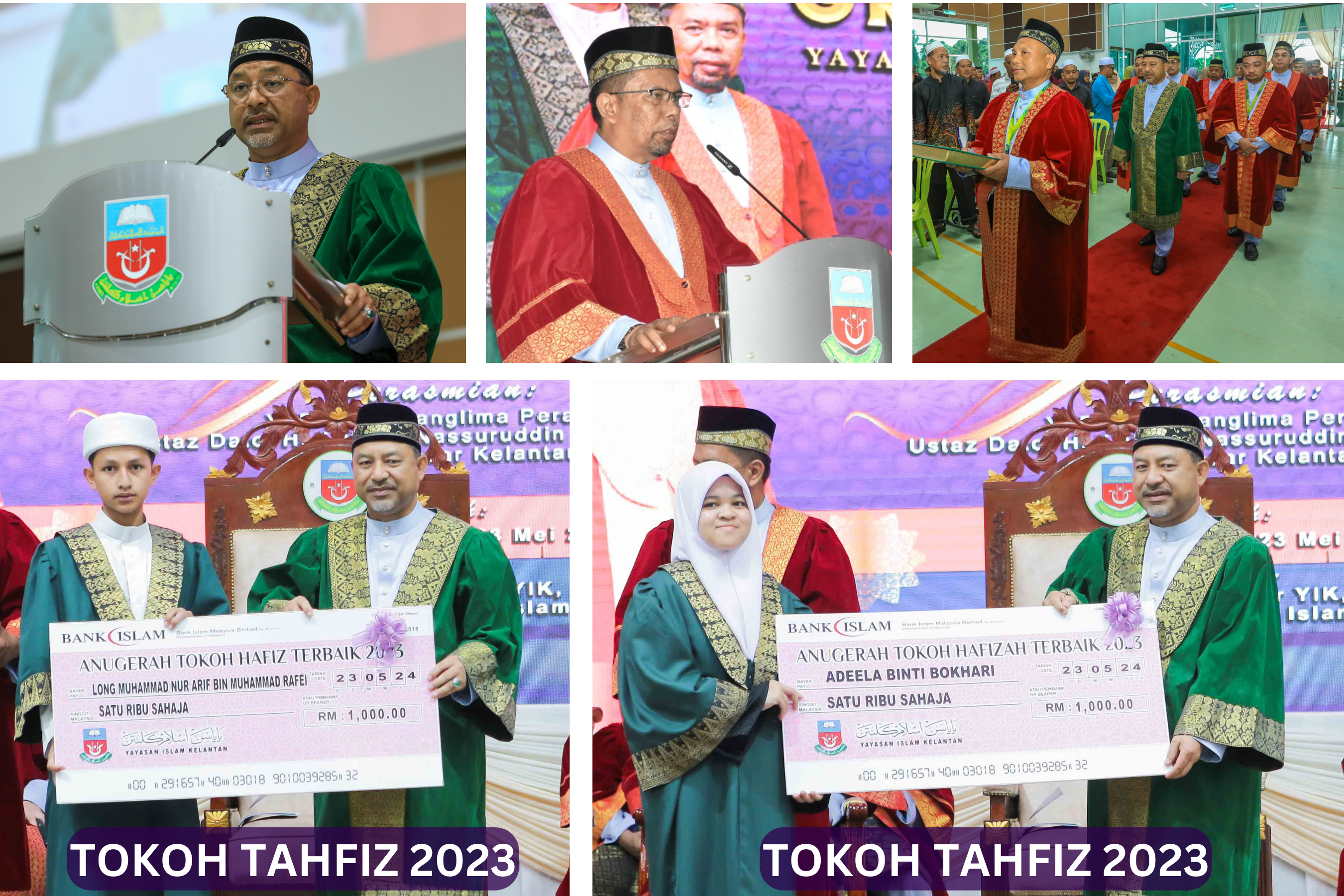 Menteri Besar Kelantan, YAB Dato’ Panglima Perang Ustaz Dato’ Haji Mohd Nassuruddin bin Haji Daud dengan berbesar hati telah megurniakan Anugerah Tokoh Tahfiz kepada Long Muhammad Nur Arif bin Muhammad Rafei daripada Sekolah SMU (A) Tarbiah Diniah Tahfiz Bunut Sarang Burung, Tumpat dan Adeela binti Bukhori daripada Maahad Tahfiz Sains Tanah Merah.Â