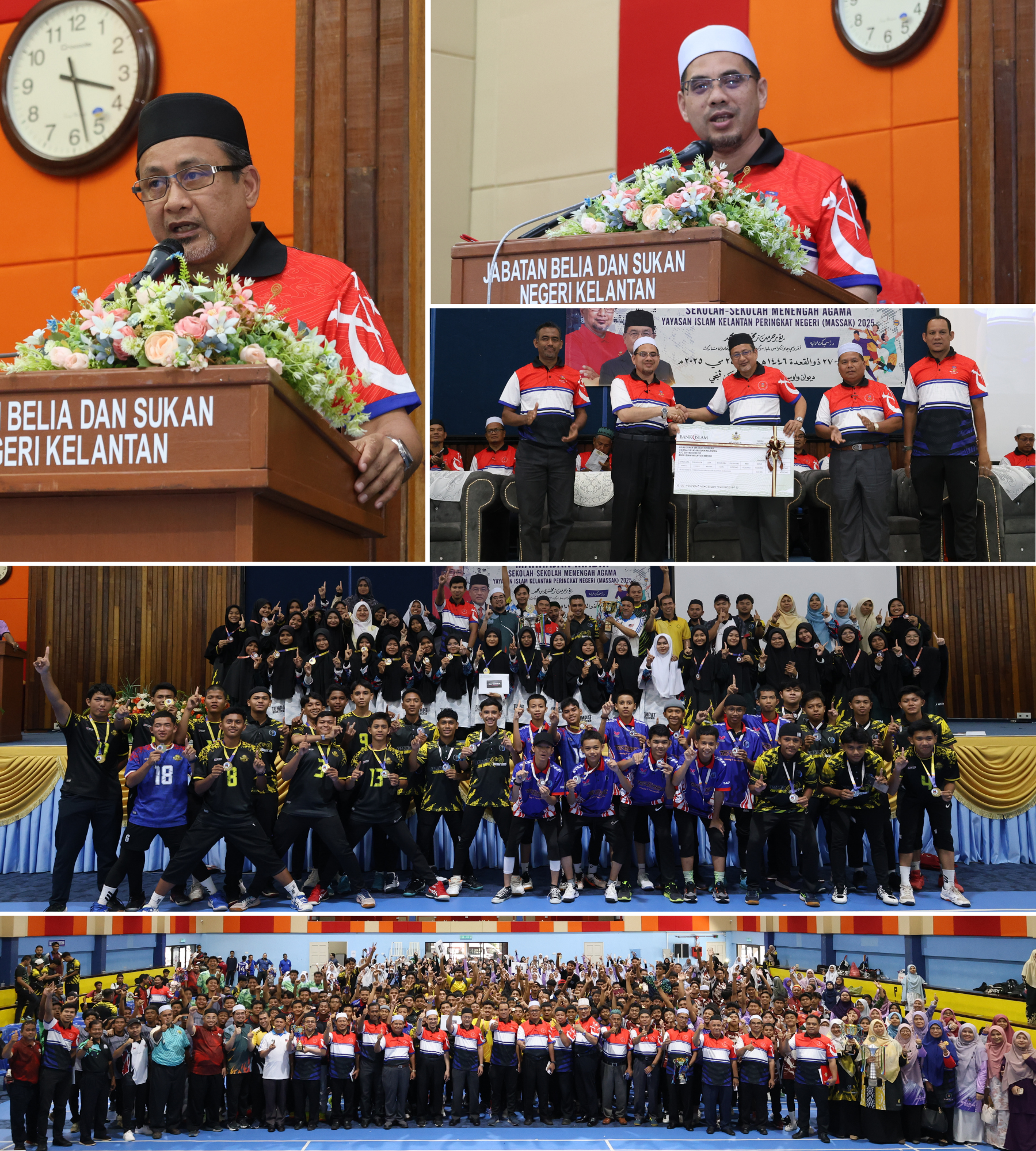 Kompleks Belia dan Sukan Negeri Kelantan, Kota Bharu, 28 Mei 2025 - Mahrajan Riadi Sekolah-sekolah Menengah Agama Yayasan Islam Kelantan (MASSAK) 2025 melabuhkan tirainya dengan penuh gemilang menerusi Majlis Penutup yang berlangsung di Kompleks Belia dan Sukan Negeri Kelantan, Kota Bharu pada 28 Mei 2025. Majlis perasmian penutupan telah disempurnakan oleh YB Zamakhshari bin Muhamad, Pengerusi Jawatankuasa Belia, Sukan, NGO dan Perpaduan Masyarakat Negeri Kelantan.